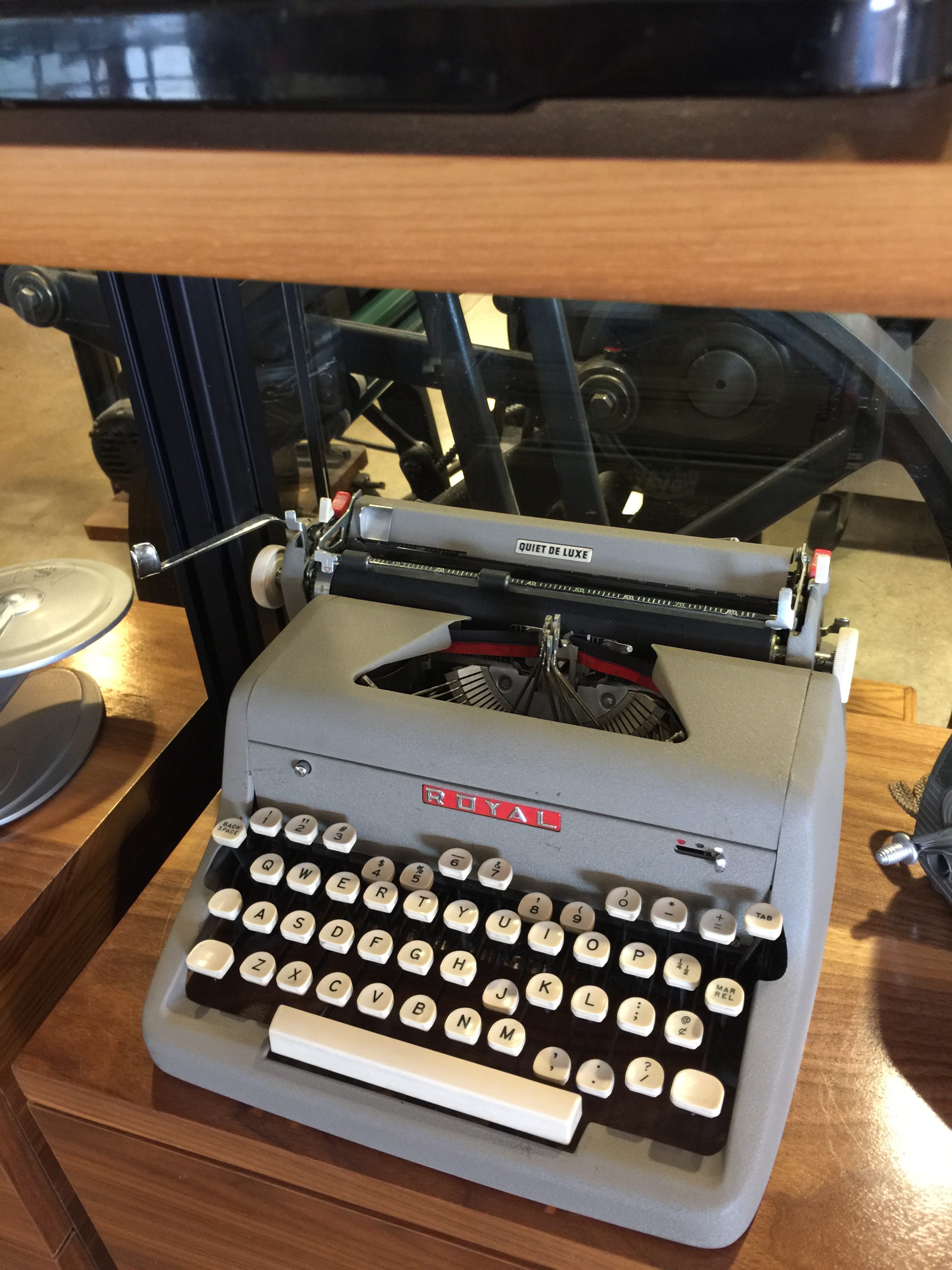 Now, it wasn’t really my typewriter - but it was the EXACT same typewriter - right down to the color, make and year - sitting here in J. J.’s lobby. I was stumped. What were the chances that J. J. and I had precisely the same random typewriter in our workspace - even if it was a prop from one of his films. I approached one of the receptionists, “Excuse me, is there any significance to the Royal manual typewriter?” She responded, “Oh, you mean J.J.’s grandfather’s typewriter?”