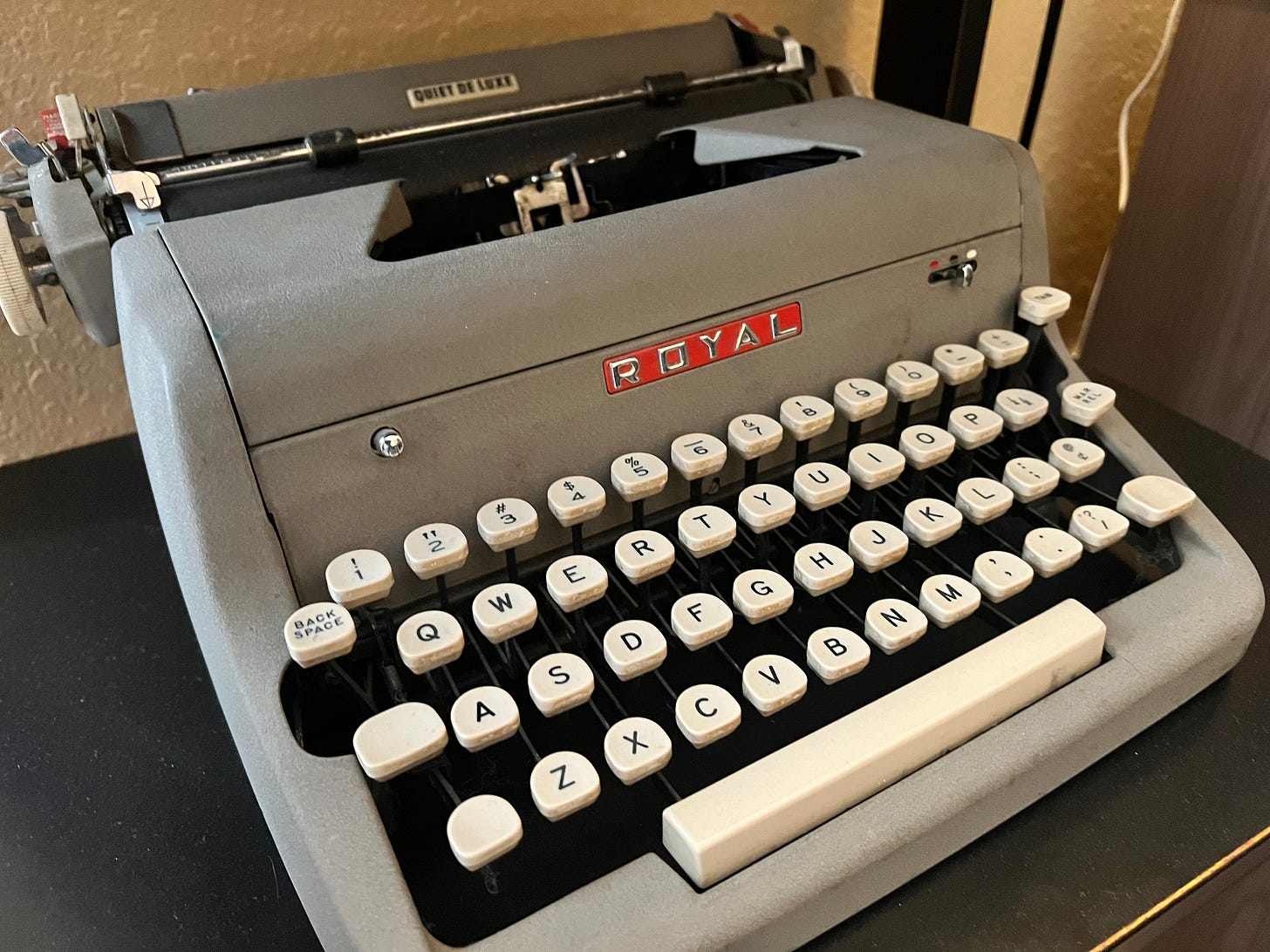 As a matter of fact, I logged so many hours typing on that mechanical monster with my two tiny eight-year-old paws that, to this day, I type faster with my two index fingers alone than I do with all ten - and I type pretty damn fast with all ten. My college roommates dubbed me “two-fingered pecker,” a nickname that was oft-misunderstood. I eventually grew away from using that manual typewriter and into an electric, then an electric with memory, then the ever-evolving word processor of a computer. But, from that day to this, no matter where I have found the space to write, there has been one constant. There, on a shelf in that room where I continue to attempt to write a masterpiece, the 1950’s ROYAL manual typewriter that my Grandfather Charlie gave me sits like an icon - reminding me: kid, don’t ever give up.
